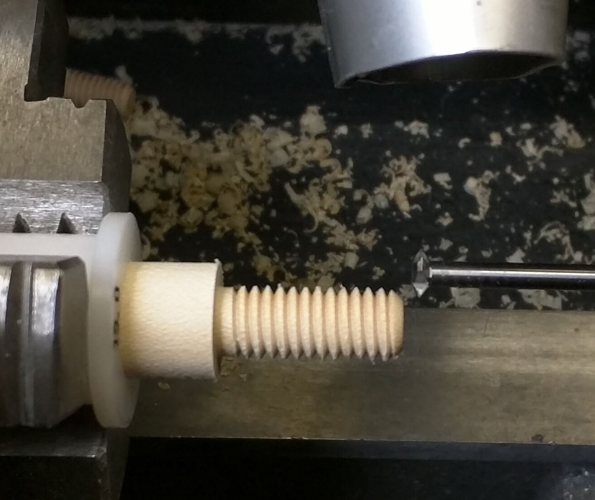 この台形ネジ切りは深さ0.35mmです。欠けて取れるような先端は必要無いと判断しました。