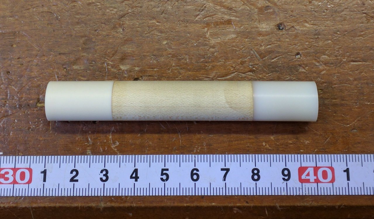 この写真、見てわかるでしょうか、台形ねじ切りです。また、木芯も太くなっています。